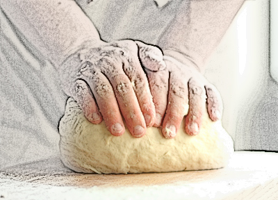 Momma tosses flour onto the kitchen table then lifts a t-cloth off a glass bowl, exposing a slick ball of dough. As she scoops out the mound and places it in the middle of the white dust, she reminds me how small it had been.