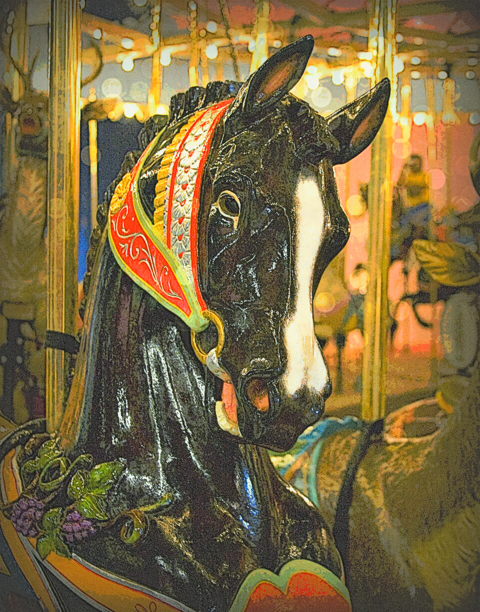 Photo: Carved wooden head of a carousel horse in The Children’s Museum of Indianapolis, CC BY 3.0, via Wikimedia Commons. Modified by Veronica McDonald.